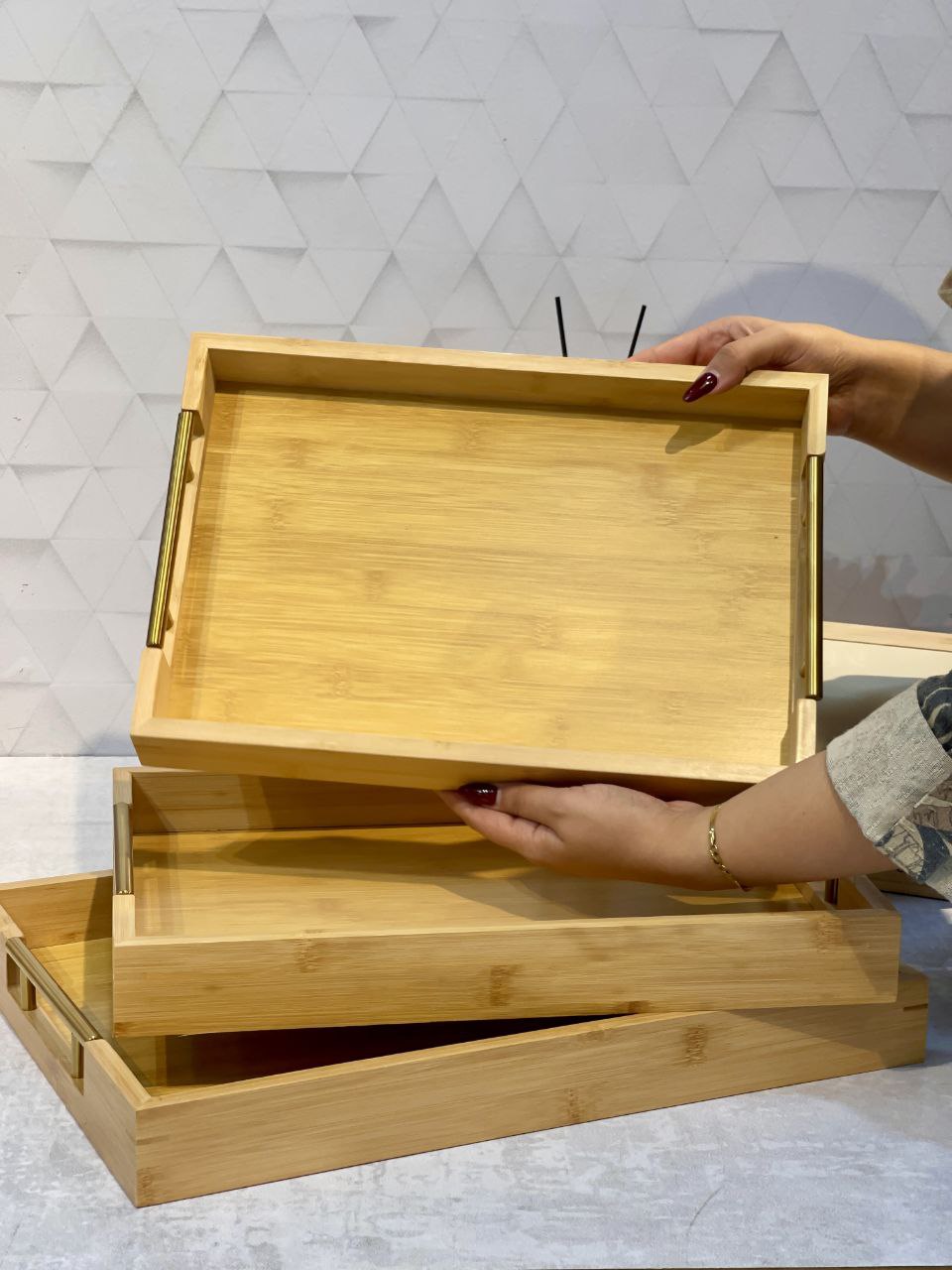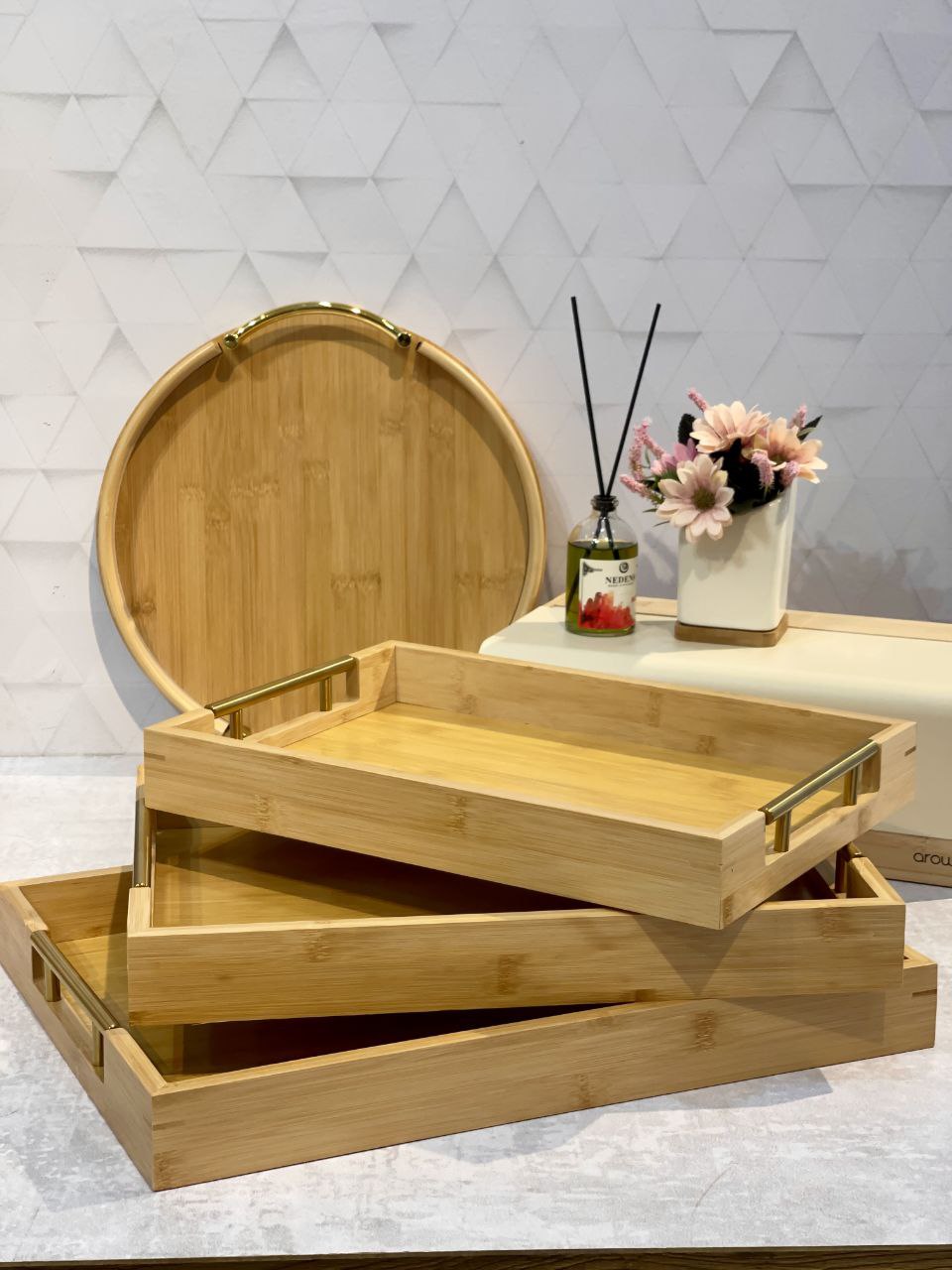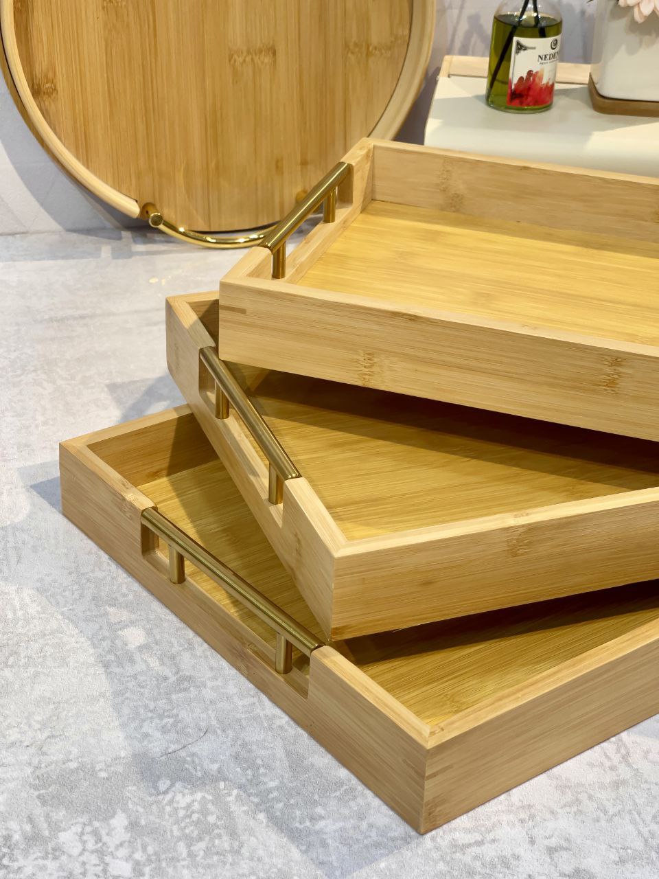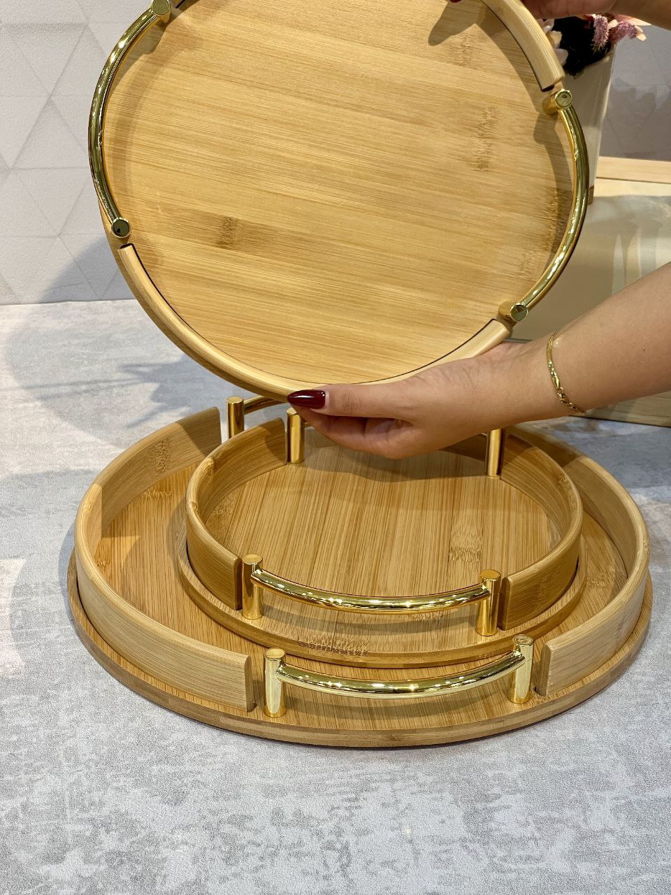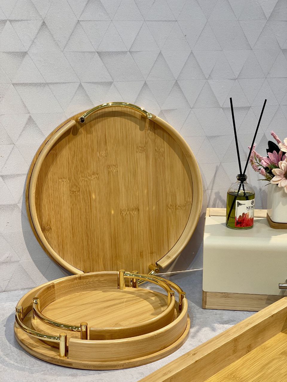 شارژ مجدد پر فروش ترین سینی پذیرایی و سرو سه سایز بامبو