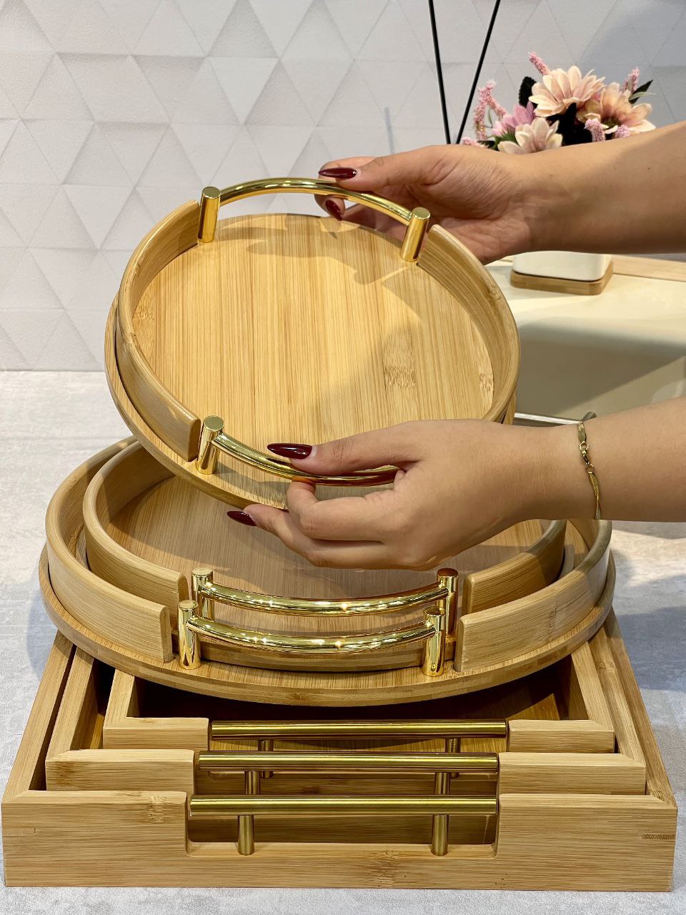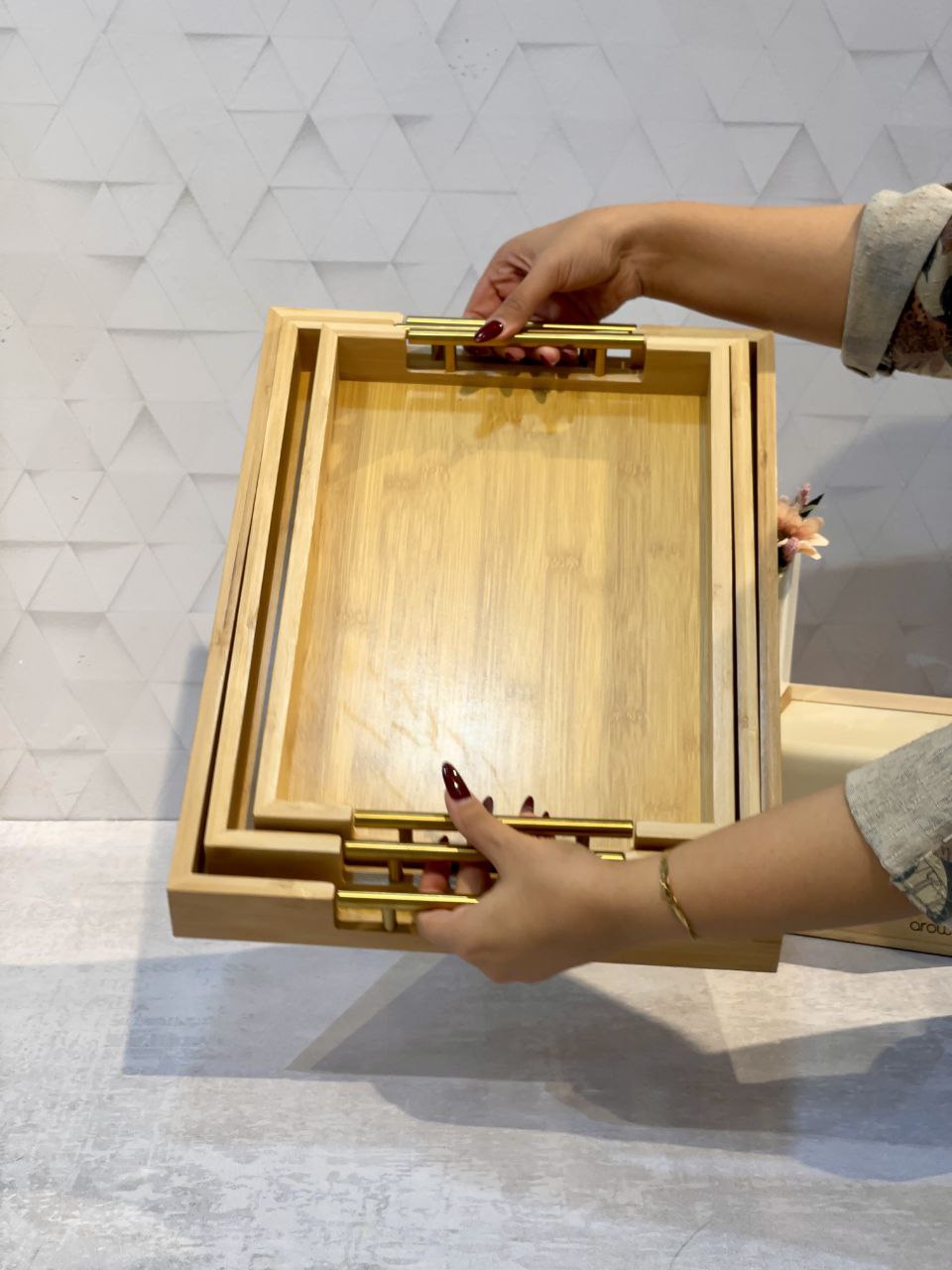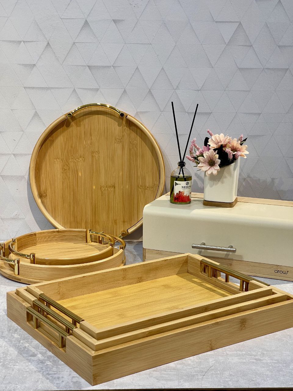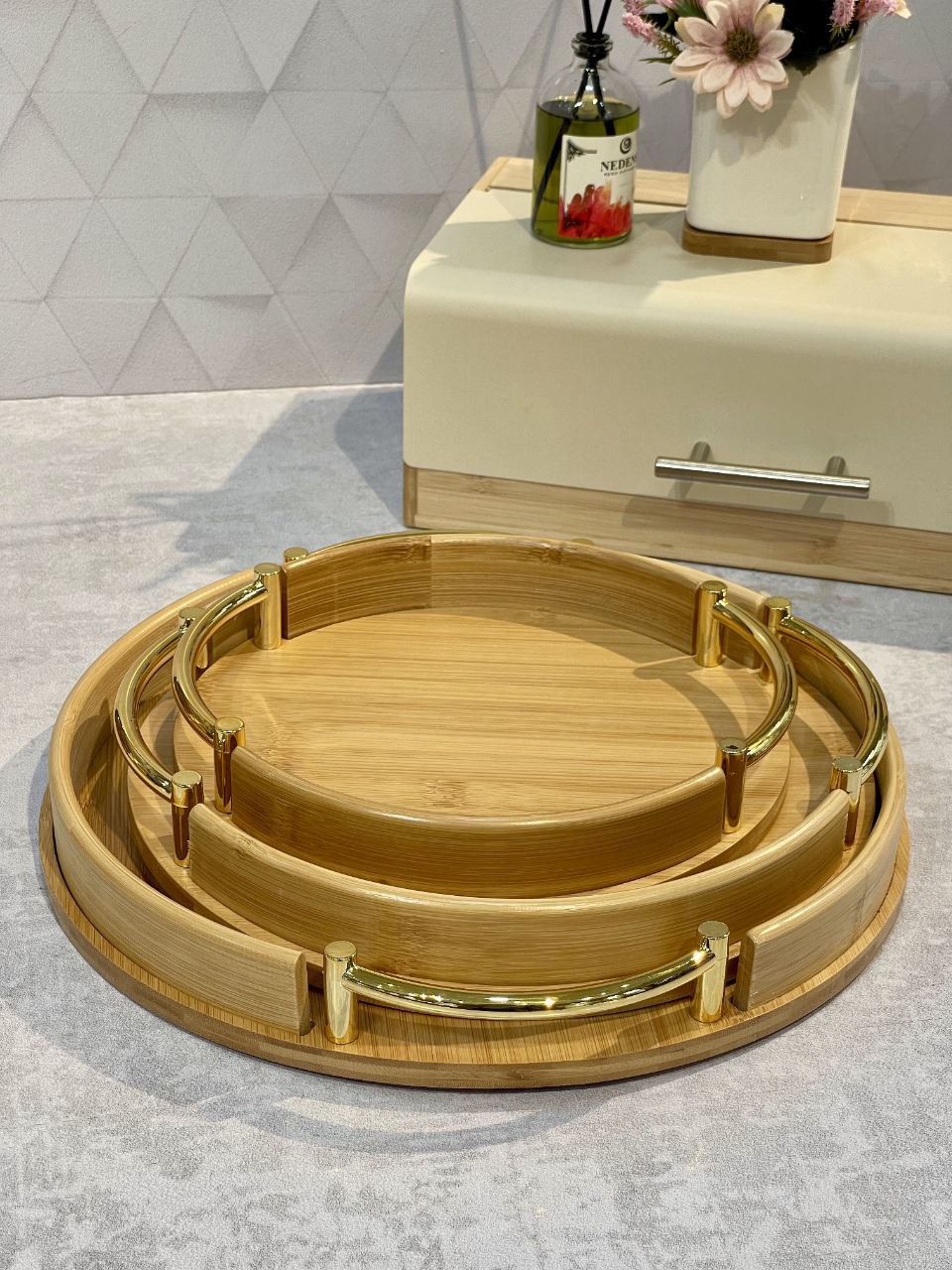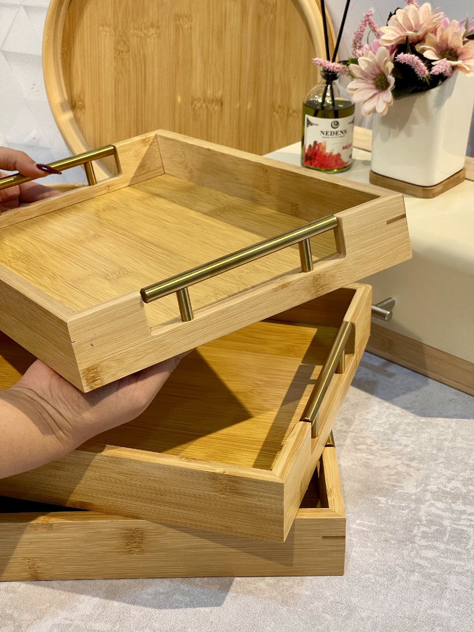 شارژ مجدد پر فروش ترین سینی پذیرایی و سرو سه سایز بامبو