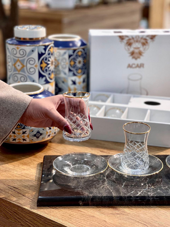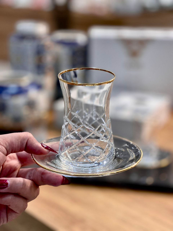 ست چایخوری تراشدار لبه طلایی 🇹🇷