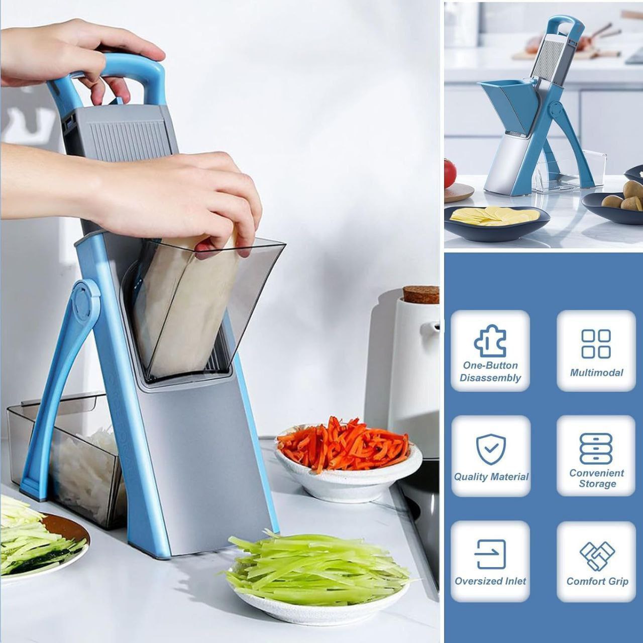 شارژ مجدد با کیفیت عالی👌 خرد کن،اسلایسر و رنده دستی همه کاره محصول ترکیه🇹🇷🇹🇷🇹🇷 قابل استفاده برای خرد کردن سبزیجات،صیفیجات،میوه جات و... دارای کلید تنظیم تیغه جهت خلال کردن،ورقه کردن ریز و درشت قیمت:1.290.000تومان ارسال از خوی