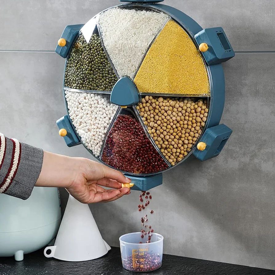 جا برنجی و حبوبات چرخشی دیواری محصول وارداتی جنس:فایبر گلاس✅️ دارای شش خانه مجزا نصب راحت و بدون سوراخکاری دیوار✅️ حجم هر باکس:1.5 لیتر قیمت:1.590.000تومان ارسال از خوی