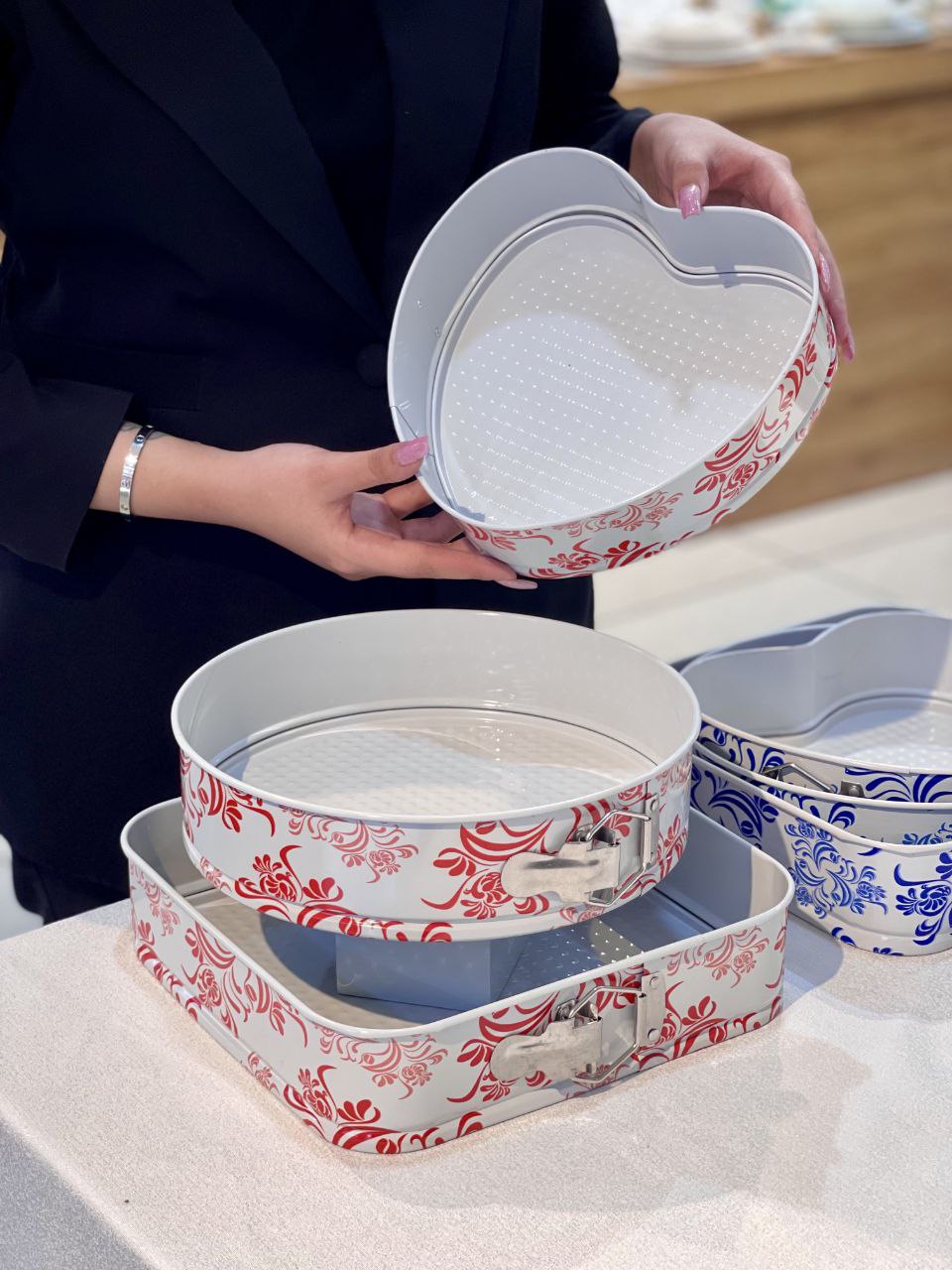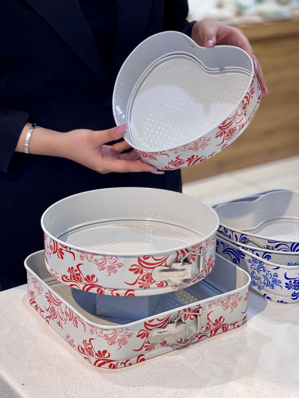 قالب کیک کمربندی سه تایی محصول وارداتی جنس:آلومینیومی هر پک در سه قالب گرد،مربع و قلبی قابل استفاده در ماشین ظرفشویی،فر،ماکروفر قلب: 24 سانتیمتر گرد: 26 سانتیمتر مربع: 27 سانتیمتر در دو رنگ قرمز و آبی ارسال از خوی