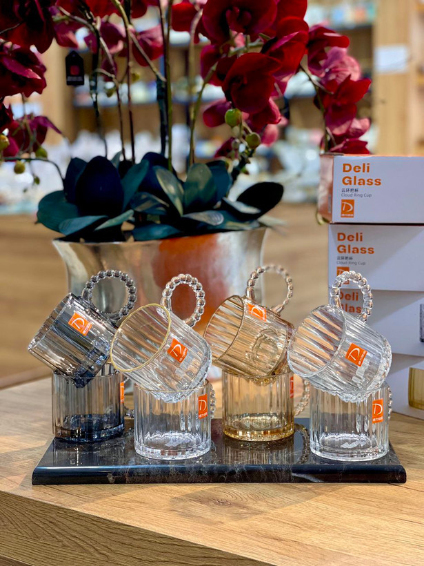 سری کامل ماگ و فنجان دسته حلقه منجوقی