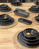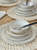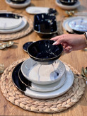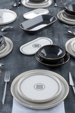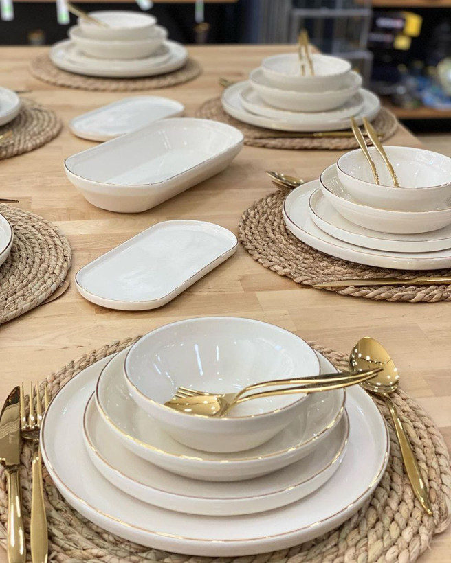 شارژ مجدد سرویس غذا خوری لبه دار در شش مدل مجزا سفید لبه طلایی، سفید دور سیلور، سفید مشکی آبرنگی، سفید مشکی طرحدار، سبز آزوله و طرح پر طرفدار سوفیا