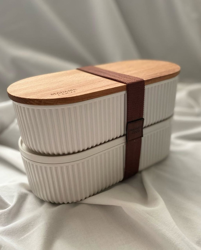 باکس و ظرف غذا دو طبقه درب چوبی ironika